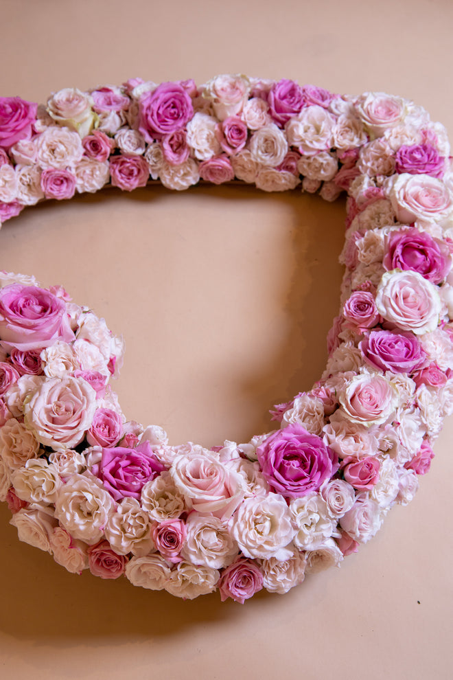 When words fail, say it with flowers. A delightful wreath of dewy-fresh pink roses to express your deepest emotions for your most precious relationships. It’s impossible not to smile when looking at such a delightful reminder of your affection.